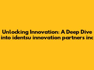 Let's explore identsu innovation partners inc, a powerhouse in the world of creative solutions and innovative strategies. identsu innovation partners inc stands as a beacon for businesses seeking to revolutionize their approach to marketing, technology, and overall growth. In this article, we'll dissect what makes identsu innovation partners inc a key player in the industry, examining its services, its impact, and how it helps clients stay ahead in an ever-evolving market landscape. We'll look at the company's history, its mission, and the core values that drive its operations, providing a comprehensive overview for anyone interested in understanding the dynamics of this influential organization. This exploration will uncover the strategies and philosophies that underpin identsu innovation partners inc's success, offering valuable insights into how innovation can be effectively harnessed to drive business results. Whether you're a seasoned industry professional or just starting to explore the world of innovative partnerships, this article will provide a thorough and engaging overview of identsu innovation partners inc and its contributions to the field. Remember, staying informed is the first step to leveraging the power of innovation in your own endeavors.