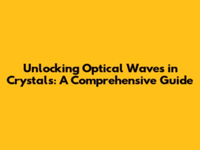 Crystal optics is an essential topic for anyone interested in optics, physics, or materials science. It underpins many technologies, and understanding how crystals interact with light opens the door to innovation. So, the next time you look at your LCD screen or use a polarizing filter, remember the cool world of optical waves in crystals!
