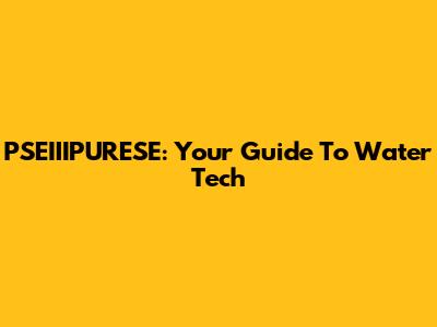 PSEIIIPURESE: Your Guide To Water Tech