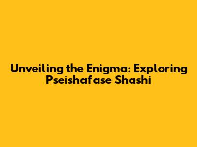 Deciphering the Layers: What Exactly is Pseishafase Shashi?