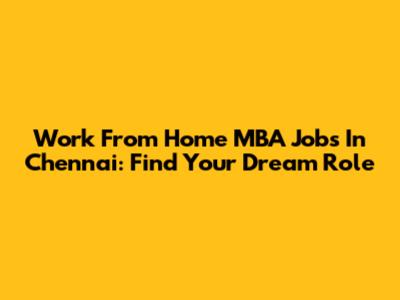 Work From Home MBA Jobs In Chennai: Find Your Dream Role