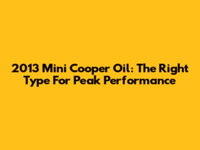 2013 Mini Cooper Oil: The Right Type For Peak Performance