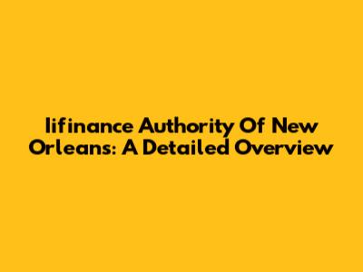 Iifinance Authority Of New Orleans: A Detailed Overview