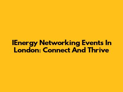 IEnergy Networking Events In London: Connect And Thrive