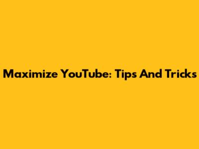 Maximize YouTube: Tips And Tricks