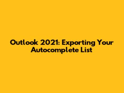 Outlook 2021: Exporting Your Autocomplete List